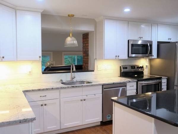 Beautifully updated 3BR, 2BA home in Bloomfield, CT. Nestled on a private lot with mature trees, this home blends modern updates with inviting indoor-outdoor living. Features include refinished hardwood floors, crown molding, new doors and trim, and a remodeled kitchen with granite counters, stainless appliances and island. Living room with fireplace and new sliding windows, cathedral ceiling entry, and family room with wood stove and tile flooring. Both baths are updated; bedrooms have double closets. New roof 2025. Outdoor living includes 30x20 stone patio, gazebo, built-in fire pit, landscaped walkways, and raised garden beds. Amenities: central heat and cooling, washer dryer hookups, attached 2-car garage and ample parking. Rent $3300/mo plus utilities; 12-month lease; 2 months security. No pets. Screening: $100 app fee, credit and background check, proof of income, positive rental history. Available now.