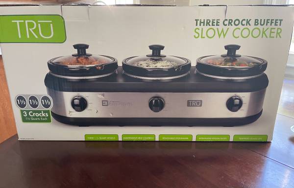 For Sale: Tru Triple Crock Buffet Server Slow Cooker Food Warmer Model: BS-318LR Only used once for a family gathering. $30 Cash only Source: Walmart TRU Three 1.5 Quart Crock Buffet Slow Cooker,...