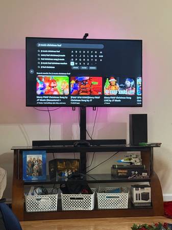 Rush sale smart TV and TV stand with free backlights. Accept only cash and For pick up only…