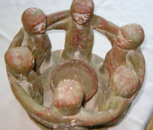 The circle of friendship is never broken in this terra-cotta candleholder. Legend says the forms are based on a pre-Columbian ritual.