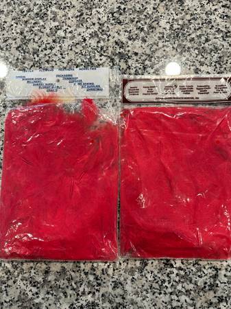 Marabou Craft Feathers 4 packages: - 2 Red - 1 Yellow - 1 Blue Feathers have not been used and are in New Condition 3 of Bags were opened with just a few feathers taken out Priced and Sold Only as...