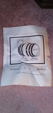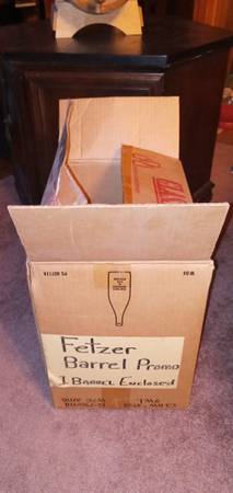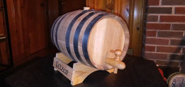 This is a wooden wine barrel with a wooden stand with wooden tap. It has metal rings holding the barrel together. So, it is a real barrel. However, it is not full size. In this photo, it is placed on a good size end table so that should give you an idea on size. This was sold to bars and liquor stores as a display piece to promote their product. They were not sold to the general public. This one is new, unused, with the original box. The boxes they were shipped in were just wine boxes. It looks great! Very rare! New old stock from the late 1980's.