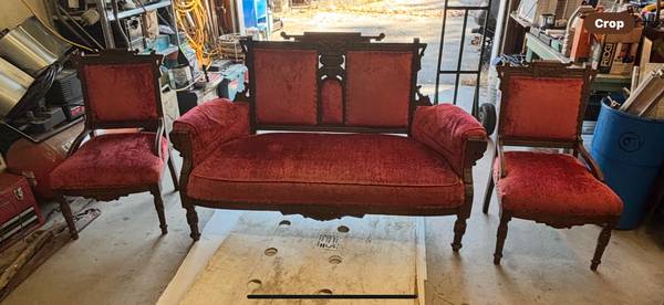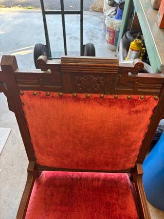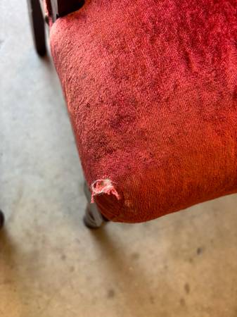 Antique red velvet furniture. Looks like it belongs in Dracula’s castle. Not perfect, some tears here and there. Asking $200 or bo. Please call or text 860-906-eight3eight6. Thanks.