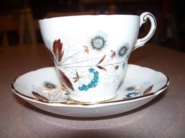 This is for one Regency English Cup and Saucer Set. They both have a gold embroider and feature one of the more rare and unique flower patterns. These are made in England and are made of Bone China. Bottom of each features this description including a make Englishman with a top hat. Only asking $15. If interested, please email me. Or call me. No texts as this is a land line.