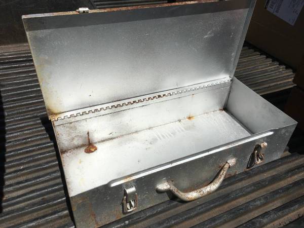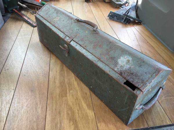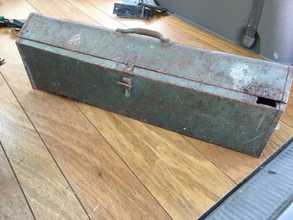 Whole bunch of stuff, long metal toolbox maybe like $20, long wood box with nice oak handle $15 silver repaint box $15sold, Stanley butt markers $20 both, Dunlap handsaw sharpening jig $15