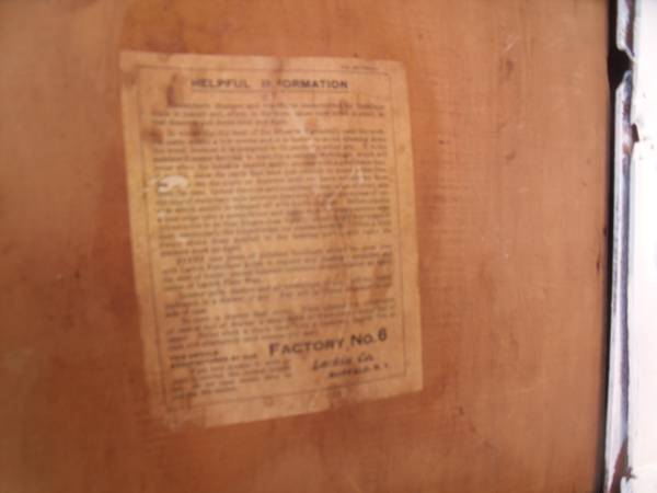 Vintage drop leaf desk made by the Larkin soap company in Buffalo, NY founded in 1875 and closed in 1942. Heavy oak construction. Has three drawers and the table collapse to fold down the leaf to the right of the drawers. This is a great piece for anyone short on space or who loves historic pieces of furniture. The dimensions for this lovely piece are 47"L x 24"W x 26"H and 23" long when the leaf is closed.