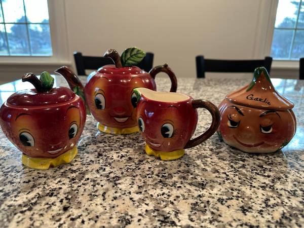 Vintage 1950's Anthropomorphic Garlic Jar and Tea Set