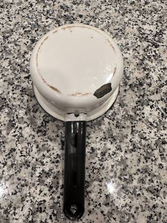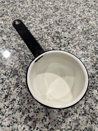 Vintage Small Enamel Sauce Pan Approx. 4.5" Diameter, 2" Deep In Good Condition In Person, Cash Sale Only Must Pick-Up, No Shipping or Delivery