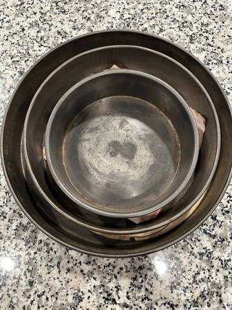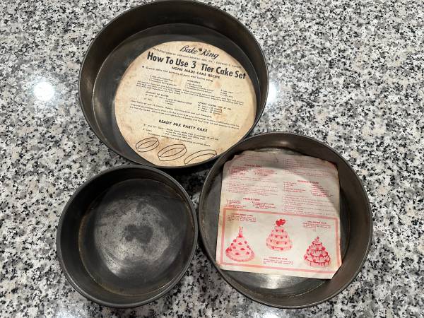 Vintage 3 Tier Cake Pan Set Bake King By: Chicago Metallic Mfg. Co Aluminum Pans Sizes: 10", 8", 6" In Good Condition In Person, Cash Sale Only Must Pick-Up, No Shipping or Delivery