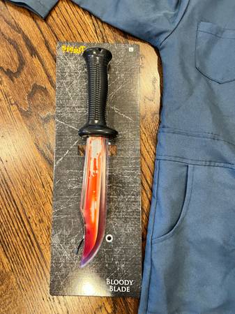 Halloween II Michael Myers Jumpsuit and Mask. Also including Bloody Blade Knife. Size is Child Medium 8-10. Original packaging included. Worn once in like new condition.