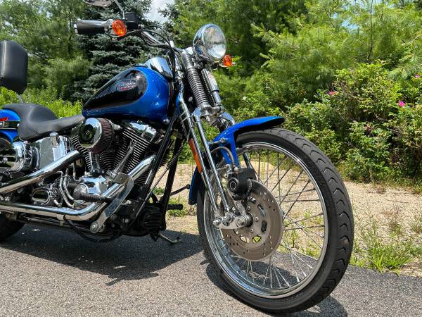 trade a custom hardtail harley with s&s motor for blue 2004 harley springer prefer low miles and all stock bad back cant ride hardtail runs and drives send pics if interested thanks