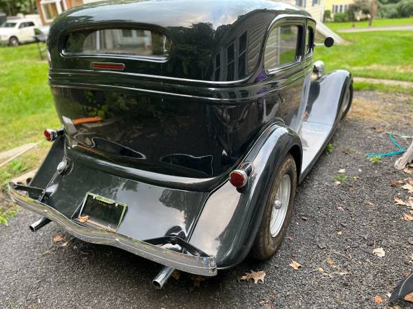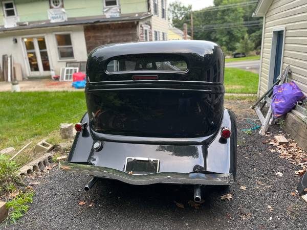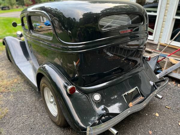 Sell or Trade my 1934 2 door sedan, Downs fiberglass body, mildly built 302, dual quads, rblt c4 auto., Mustang II front end, rebuilt ford 8” rear, 355 gears, a/c, heat, side panels that close in engine, electric suicide doors, new paint, less than 200 miles since build was completed. Everything on vehicle is new or rebuilt Passed NY safety inspection and has been registered for a few years. Only needs interior to complete. Comes with newly purchased rear seat that is shown in pics. Front seats are honda accord (not shown in pics) which need to be upholstered to match the rear seat. Included are multiple yards of black vinyl and 4 yards of the same red material used on the rear seat. The vehicle is presently registered out of state in my name. Open to reasonable offers of interesting daily driver trade or sell in mid 20's This is a 45 to 60k vehicle when interior is done. Open to working a trade deal with cars or trucks. Cash either way as needed.