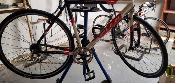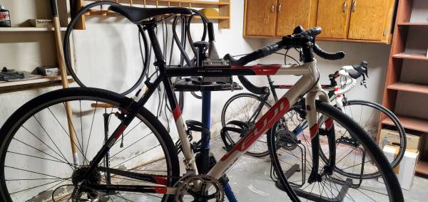 One is an older CROSS gravel model aluminum frame I believe. Offering the stand with it.