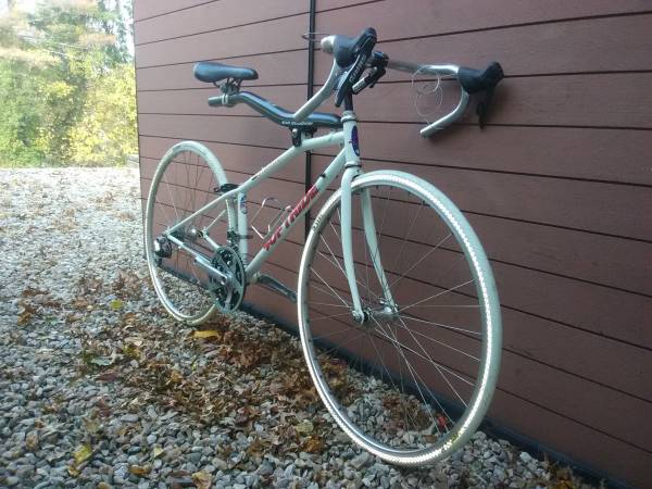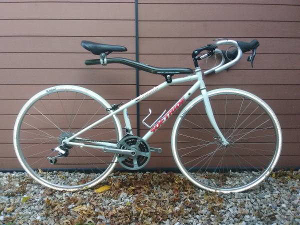 Softride Norwester project bike. This project bike has 21 speeds, a brand-new chain and new Duro tires on it as well as new tubes. The tires have reflective bands along the sidewalls that you can see in the second versions of each photo. It will need you to add the brakes, set up the cables for both the brakes and shifters, pedals and wrap the handlebars. The bike is currently setup at its lowest seat position, and it is roughly equivalent to 23" or 58.5 cm and is capable of going much higher. Also included with what you see on the bike in the photos is the original Softride stem and an extra matching Duro Tire as well. These bikes are hard to find, and this is the only one that I have ever seen in person. I am moving and must sell this bike, hopefully to someone who will do it up right. $250 or best offer. Local, in person, cash transactions only. No checks or electronic transfers of any kind will be accepted, and shipping is not an option. If you are seeing this posting, this item is still available.