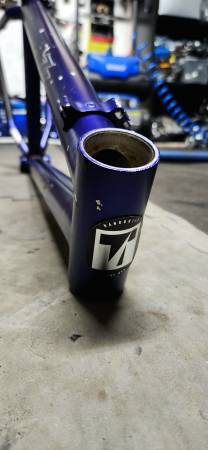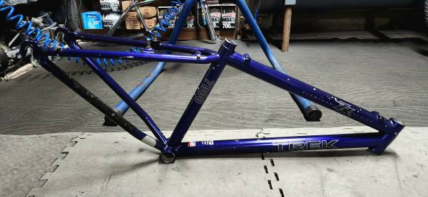 Mid-90s 14.5" TREK ZX 7000 frame USA-MADE with Easton butted aluminum tubing. The head tube is 1 1/8", the top tube measures 20.5" center to center, and the I.D. of the seat tube is 27.0mm. There is some rust on a few of the cable bosses and the original paint shows age but no structural issues and the euro BB threads are clean so check pictures 📷