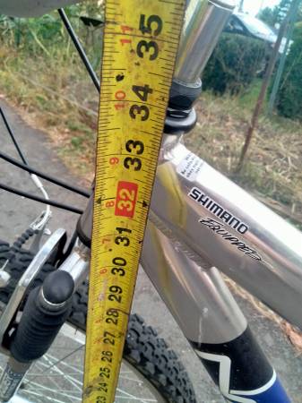 Frame measures 33" or so at the top of the slant. I'm 5'11" and it's just a hair too small for me.