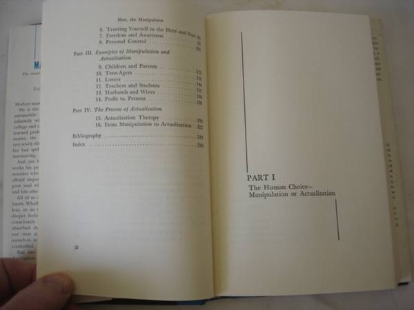 MAN, THE MANIPULATOR: The Inner Journey from Manipulation to Actualization, by Everett L. Shostrom. Hardcover with Dust Jacket, First Edition, First Printing by Abingdon Press, 1967. Bindings Tight, Corners Square, No Creases but has ink, pencil or highlight markings in the book. 256 Pages which includes the Index.