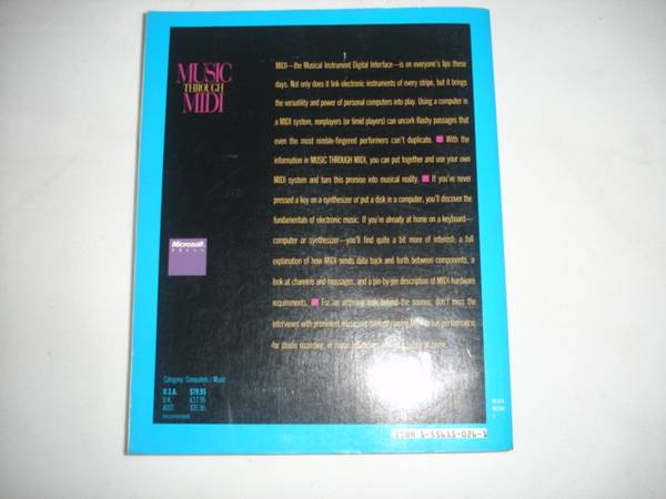 Music Through Midi: Using Midi to Create Your Own Electric Music System by Michael Boom (Author). First Edition – Published by Microsoft Press – 1987. ISBN: 1-55615-026-1, 302 Pages which the Includes Index. Soft-Cover Book.