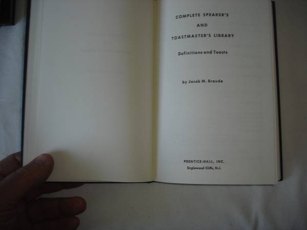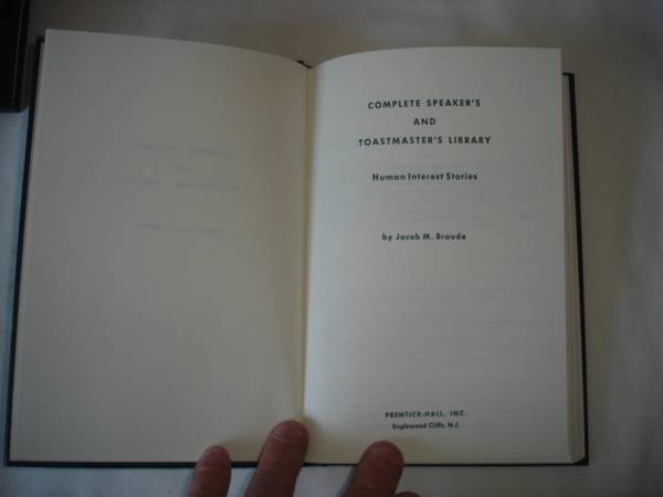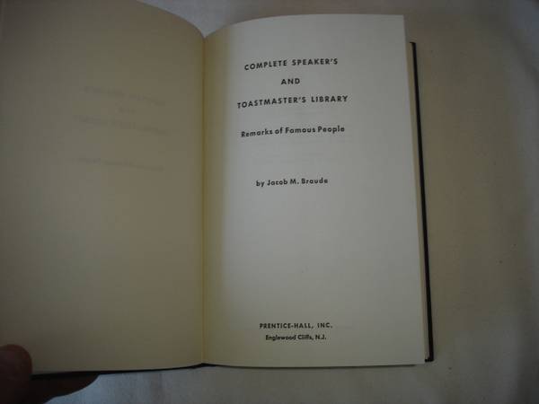 COMPLETE SPEAKER'S AND TOASTMASTER'S LIBRARY, by Jacob M. Braude. Eight (8) Volume - Hard Cover – First Edition – by Prentice-Hall. Library of Congress Catalog Card Number: 65-25224.