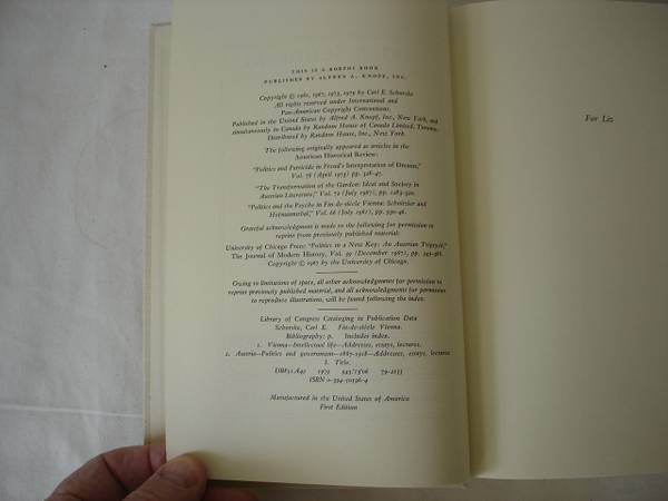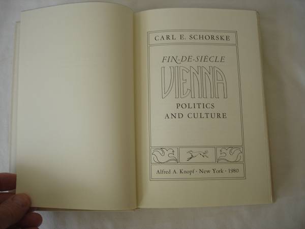 Fin-de-Siecle Vienna: Politics and Culture, by Carl E. Schorske. Hardcover with Dust Jacket – This is a Borzoi Book Published by Alfred A. Knopf, Inc. Manufactured in the USA, First Edition – 1979. ISBN: 0-394-50596-4. 378 Pages Which Includes the Index.