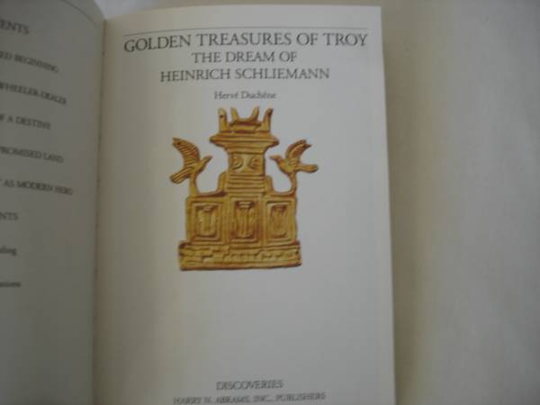 Golden Treasures of Troy: The Dream of Heinrich Schliemann, by Herve Duchene. Soft-Cover – First Edition – Published by Discoveries, Harry N. Abrams – 1995. ISBN: 0-8109-2825-6. Library of Congress Catalog Card Number: 9579942. 143 Pages which includes the Index.