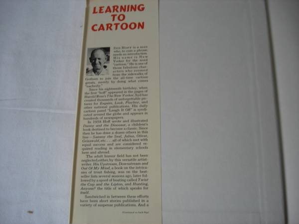 Learning To Cartoon, by Syd Hoff. Hard-Cover (red & light yellow with black lettering) - First Edition – Published by Stravon Educational Press. - 1966. No ISBN. Library of Congress Catalog Card Number: 65-28844. B/W Illustrations of Cartoons. 191 Pages which includes the Appendix.
