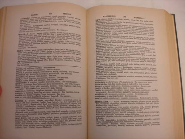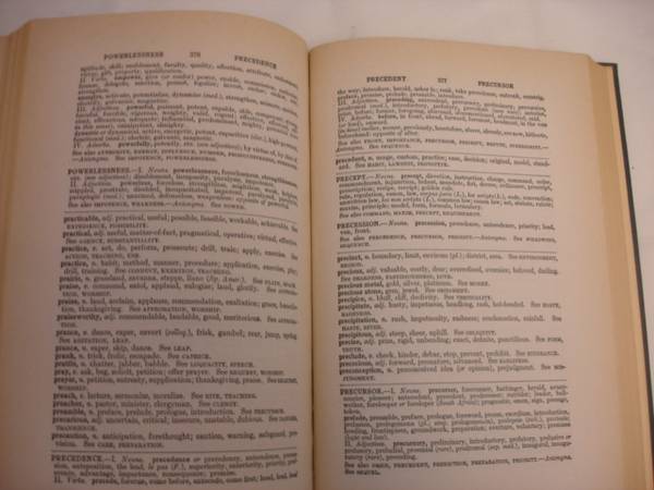 Roget's Thesaurus of the English Language in Dictionary Form, by C.O. Sylvester Mawson. Hard-Covers (green with gold lettering) No Dust Jacket – Second Edition – Published by Garden City Publishing Company – 1939. No ISBN. No Library of Congress Catalog Card Number. 600 Pages which includes the Index.