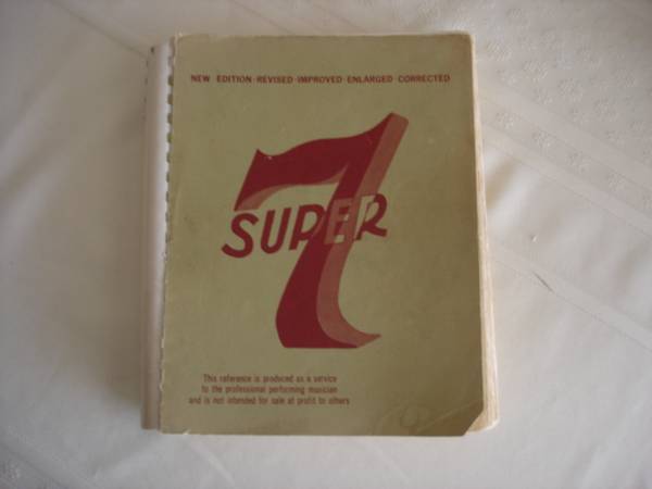 Super 7, Latest Broadway Musicals April 10, 1955, Issue dated April 12, 1975. Soft-Cover – No ISBN. No Library of Congress Catalog Card Number: “At last, Volume 7, which has become one of the most popular “fake” books around, is presented in a new, improved form. First of all, the index has been corrected so that you can find the tunes where they are supposed to be. Secondly, all the missing chords have been written in. Third, all the microscopic size tunes have been enlarged so that you can read them. Fourth, we’re added a few that should have been put in, in the first place.
