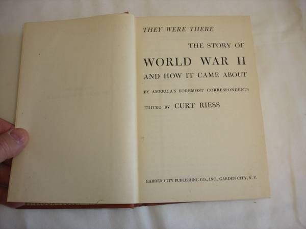The Story of World War II, Edited by Curt Riess & U.S. Correspondents. Hard Cover – First Edition - Garden City Publishing – 1945. No ISBN. No Library of Congress Catalog Card Number. 670 Pages.