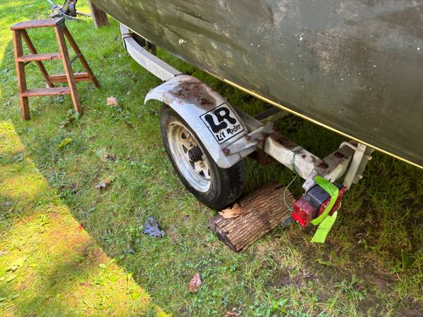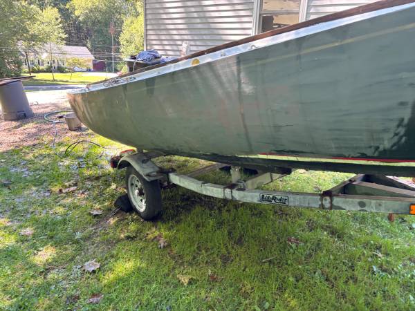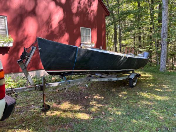 Classic Rhode 19 centerboard fiberglass one design,daysailor. Project. Resting on a Lil Rider trailer.