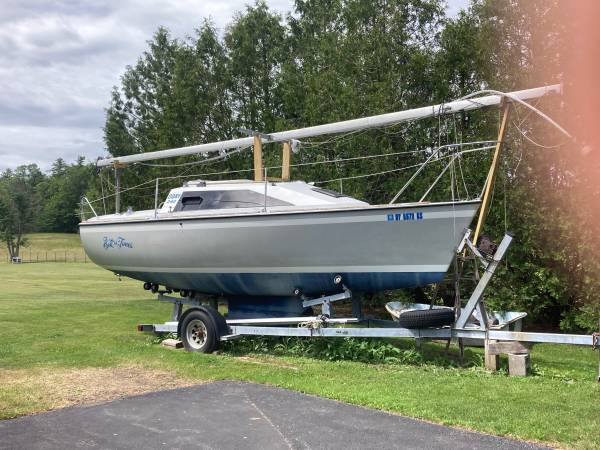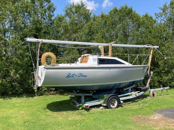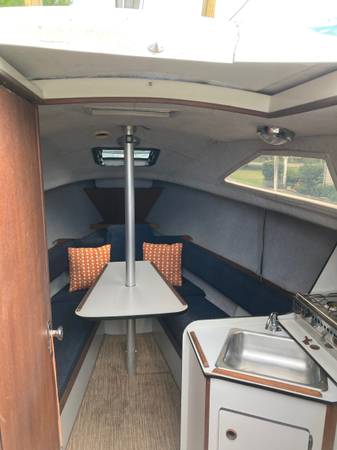 Depth sounder, compass and knot meter, this sailboat is located near Albany NY on the trailer