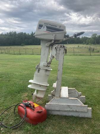Includes trailer and 8hp Johnson seahorse outboard engine and gas tank