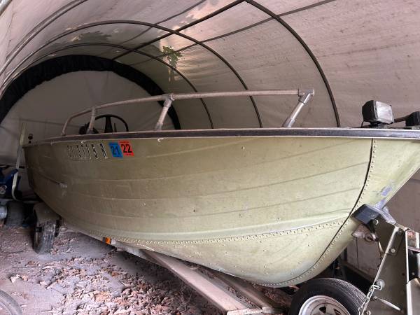 1970 17 foot StarCraft aluminum console boat. 50hp mercury outboard.(motor early 2000’s) Runs good. Just replaced spark plugs last month. Cleaned carburetor and replaced fuel in tank. Fuel filter is good. The motor has been started periodically even when sitting. Water pump and impeller are good. I have videos of motor running within the last two weeks but videos won’t post for some reason. I can run motor at home when boat is stored. Stored boat in garage year round. Never sees rain or snow unless I’m in it fishing. Steering works perfect very smooth. Serviced regularly. Been greased regularly. Electric tilt works great. Bilge pump works(although no leaks). Floor is solid no soft spots. Carpet is decent could use a good clean but it’s in good shape. Wiring is good on the boat but could be cleaned up. When I got the boat I intended on securing and hiding the wiring better but never got around to it. 14 fishing rod holders and Lawrence fish finder. Anchor and rope included. Lights are wired in although I noticed one fog light is out but haven’t had time to diag if it’s just the bulb. Great boat just don’t have time anymore to enjoy it and hope someone else can. I enjoyed about 6 seasons with it. Trailer in decent shape. Small minn kota trolling motor included that direct plugs into boat. Open layout boat with removable and foldable canopy top. Boat is priced to sell get it while you can!!!