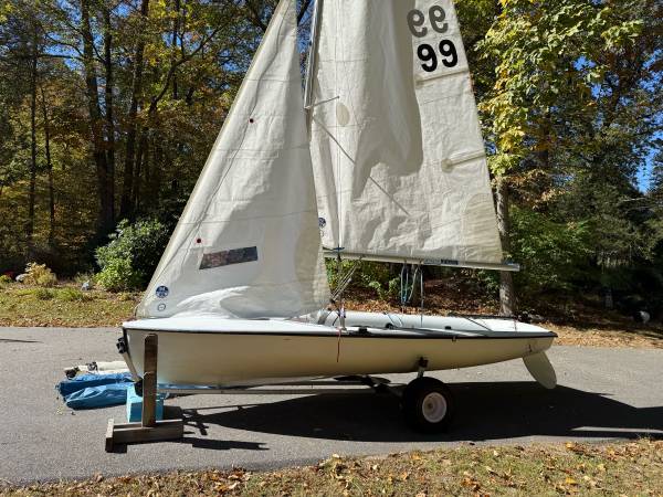 Club 420 racing sailboat with dolly and four sets of sails, the newest ones only used 1 season. 1998 Vanguard hull, very fast. All rigging and fittings were replaced. Won ECSA regular season in 2019.
