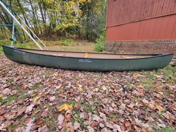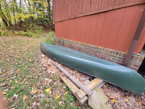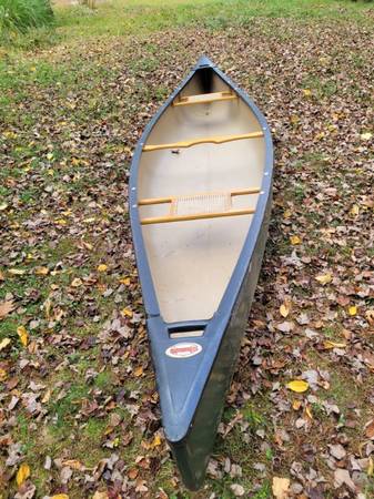 Canoe - Old Town Discovery 147 - 14 feet, 7 inches. seats in good condition. 2 oars. Kept inside.