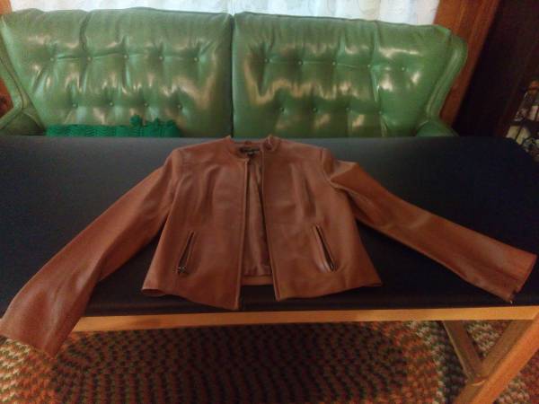 Size petite. It is in excellent condition and looks great. It was not worn much and well taken care of. The girl in the photo is just modeling it. I'm a dude. You will not get to meet her. So, stop...