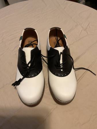 Never worn pair of Women’s School Issue Varsity White/Black shoes size 7 Wide. Not sure when they were purchased. Paper still inside shoes, in the original box.