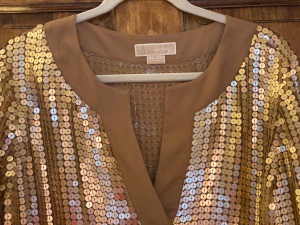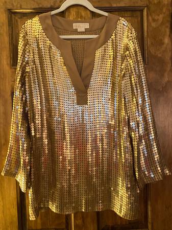 Michael Kors fully sequined blouse. In a beige / antique gold color. Lined for comfort.