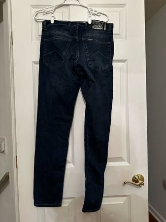 Stylish dark blue cargo pants. Durable fabric. Classic design.
