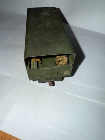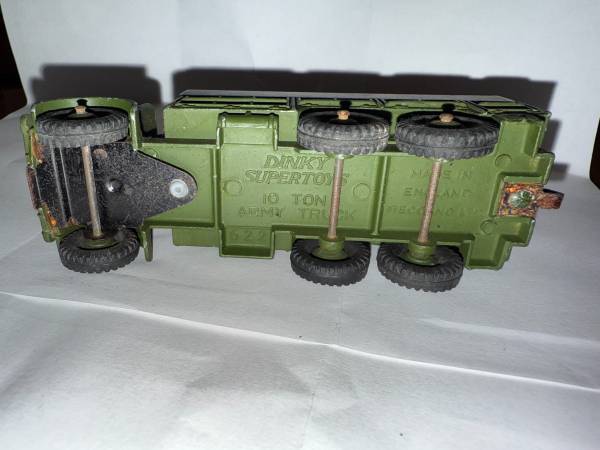 Vintage Dinky Supertoys 10 Ton Army Truck No. 622 diecast toy with 8 soldiers, rare, manufactured 1954-1964, very good to excellent condition.