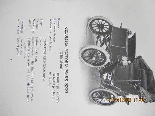 This is a 20 page sales brochure featuring 16 different models of the Columbia electric automobile. The EVC was purchased sometime around 1898 and was renamed the Columbia hence the two different names on the brochure. The Columbia was in production from 1898 to 1913. There were a few companies named Columbia that produced Electric vehicles around the same time period but this was the main one. Price is in Canadian Dollars. and ships from Canada. Insurance and shipping is extra but negotiable.