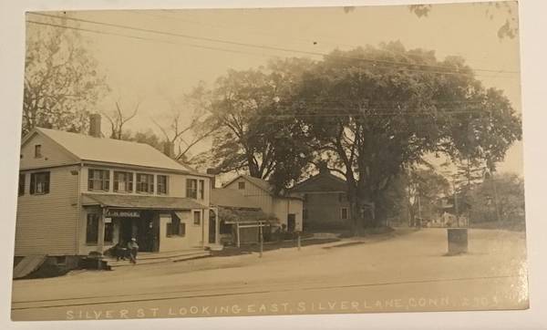 Nice antique real photo postcard with 1914 postal cancellation. Card caption reads ‘Silver St. looking east, Silver Lane, Conn’. Sign on the storefront at left reads ‘L H Bogue’. This is a nice crisp image which shows good detail, and card is in excellent postally used condition. Payment by check or paypal, and I’ll send it in a small photo-mailer envelope by USPS FIRST CLASS letter mail. Give me a call if this nice early image is of interest to you!