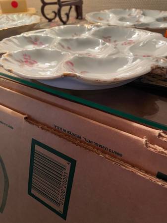 8 Haviland French porcelain oyster dishes, each holds 6 oysters plus sauce. Good for raw or cooked oysters. From a deceased grandmother and hardly used. $5 each or set for $40.00. Cash only. Will...