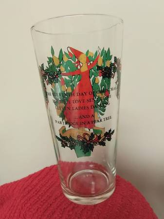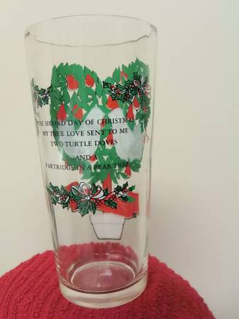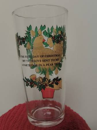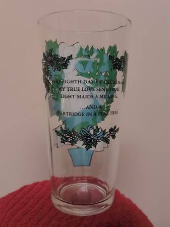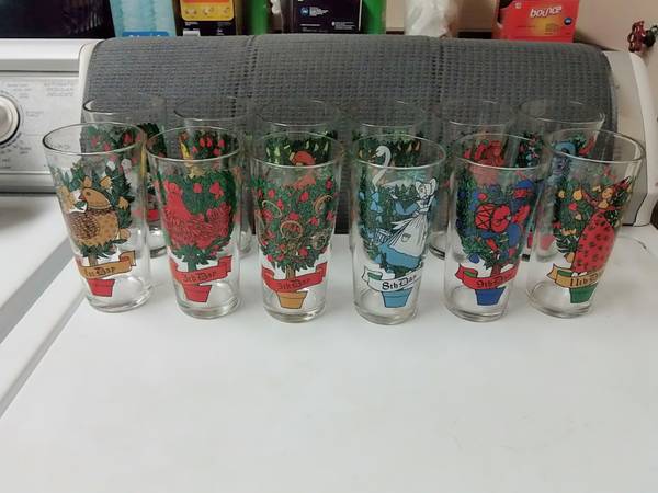 12 DAYS OF CHRISTMAS SET OF VINTAGE DRINKING GLASSES. $50.00 PHONE CALLS ONLY PLEASE LOCATED IN PLANTSVILLE CT. PLEASE DO NOT TEXT ME.