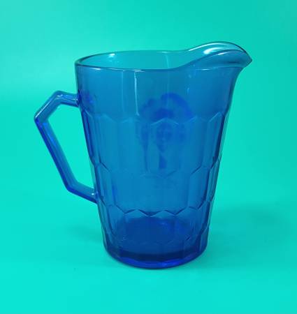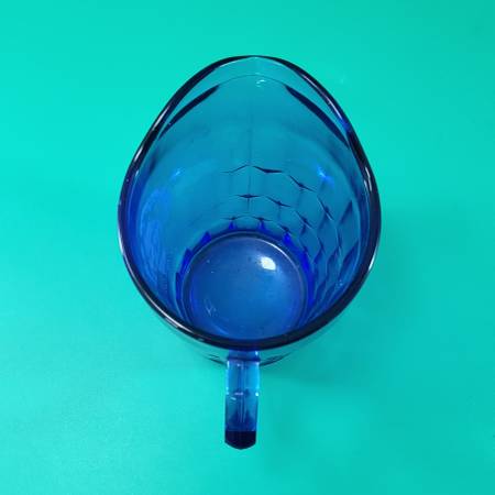 This vintage mini pitcher is a must-have for any collector or fan of Shirley Temple. The cobalt blue glass and honeycomb pattern make it a charming addition to any decor. Measures about 4.5” tall. With a capacity of 10 fluid ounces, it's perfect for serving beverages or displaying flowers.