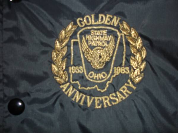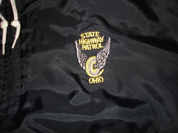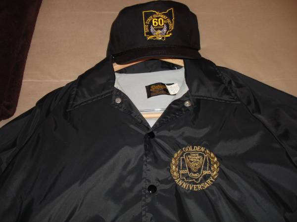 2 OHIO HIGHWAY PATROL WINDBREAKERS. 1 MEDIUM PULLOVER.1 ANNIVERSARY HAT AND BUTTON DOWN JACKET. BOTH ARE EXCELLENT AND SIZE MEDIUM. EIGHT SIX O FOUR ONE SIX 5500.