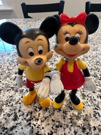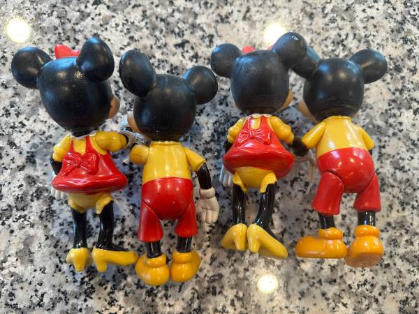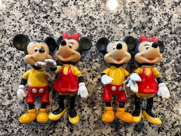 Mickey & Minnie Mouse Figures, 2 Pairs By: Walt Disney Productions Made in Hong Kong Rubber/Vinyl Figures with Movable Arms and Legs Priced and Sold as a Pair for $10 each In Good Condition for...
