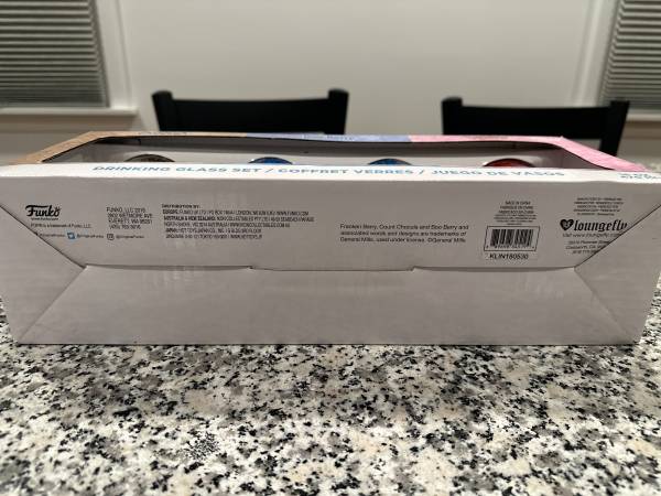 General Mills Character Glass Set Set of 4, 16 oz. Glasses By: Funko - Count Chocula - Boo Berry - Franken Berry - All 3 Characters on One Glass New in Box In Person, Cash Sale Only Must Pick-Up, No...