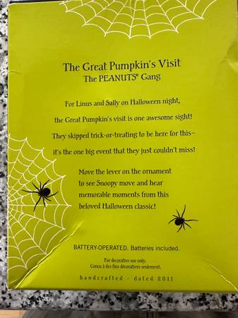 Peanuts "The Great Pumpkin's Visit" Halloween Ornament, 2011 The Peanut's Gang By Hallmark Keepsake, Magic Sound and Motion Takes 2 1.5V, LR44 Button Cell Batteries (not included) Original Box In...