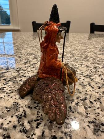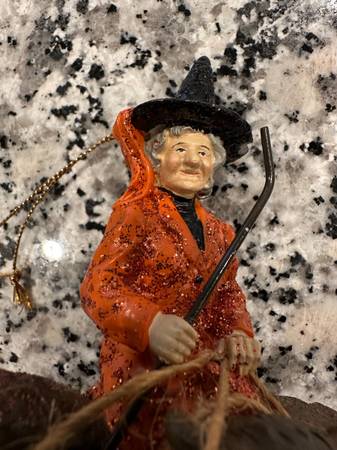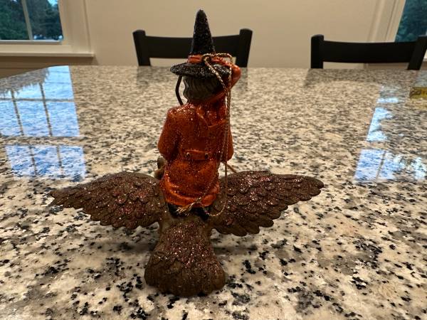 Witch Riding Owl Halloween Resin Ornament In Excellent Condition Approx. 5.5" L x 3" W x 4" H In Person, Cash Sale Only Must Pick-Up, No Shipping or Delivery